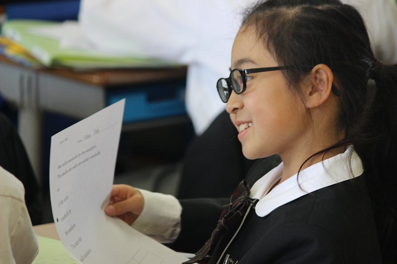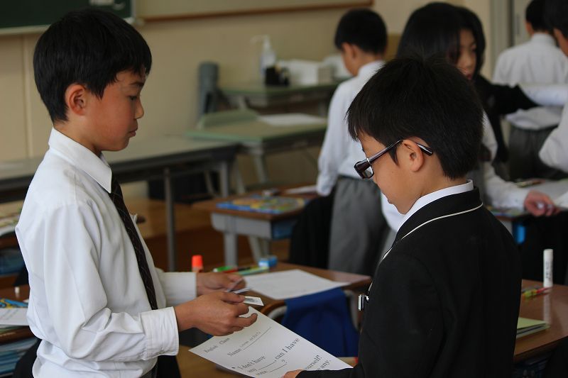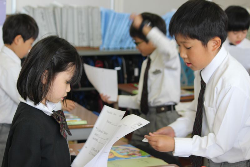 今月の早口言葉では「s」と「sh」の音の違いを学習しました。お互いに聞き合って練習をします。