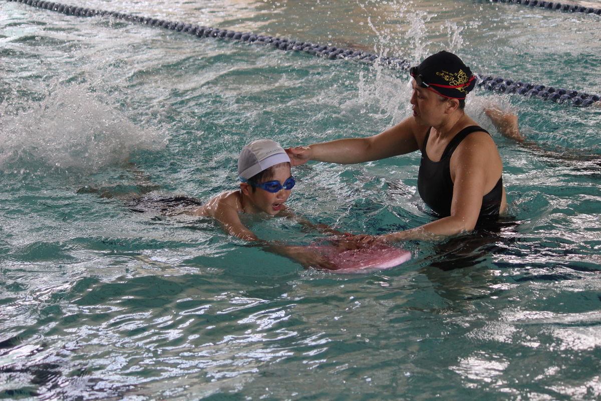 今週の月曜日から水泳教室がスタートしました。専門のインストラクターの指導のもと、今日は5・6年生のグループがそれぞれの泳力にあわせて、練習に取り組みました。