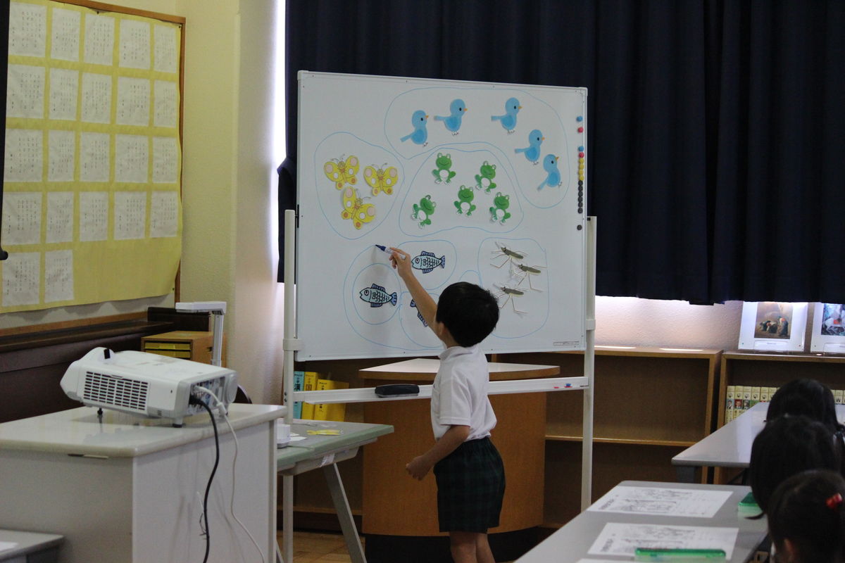 今日は年長さんが本校に来て、小学校の「国語」「算数」学習に取り組みました。幼稚園・小学校教員間での情報交換を通して、就学前の学力向上を推進しています。