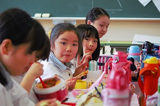 お昼はライラックごとに食べます。異学年の友達との交流を楽しんで美味しくお昼をいただきました。