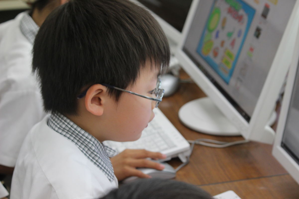 ICTの授業風景です。授業ではパソコンの入力の仕方をおぼえました。ブラインド・タッチができるかな。