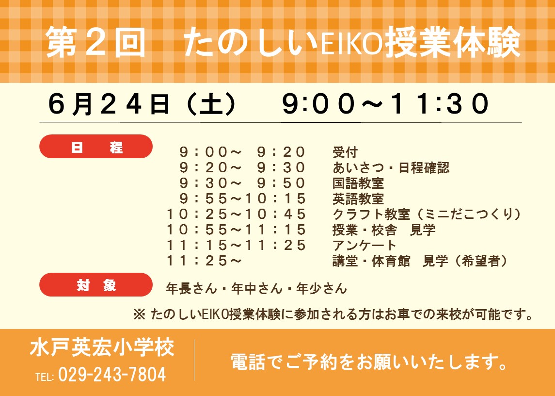 11月24日(月祝) 第2回入試直前 『EIKO授業体験+学校説明会』参加者募集 【児童募集】
