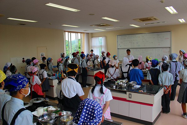 今回の調理実習では、小学生と中学生が7~8人の組み合わせで班をつくって、