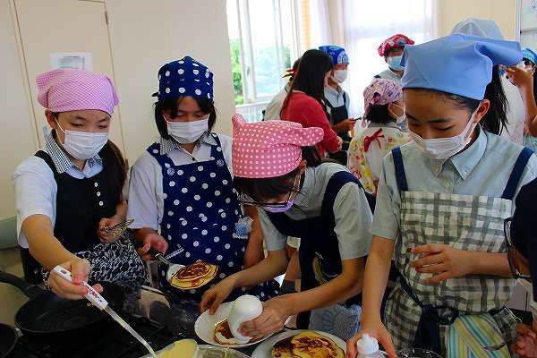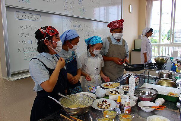 ①スイーツ大会(中学校1年生と合同の家庭科調理実習)