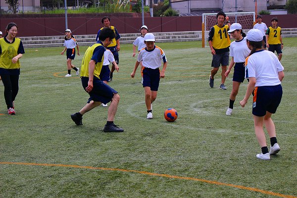 ②交流サッカー(前回と同じく中学校の教職員とのサッカー)