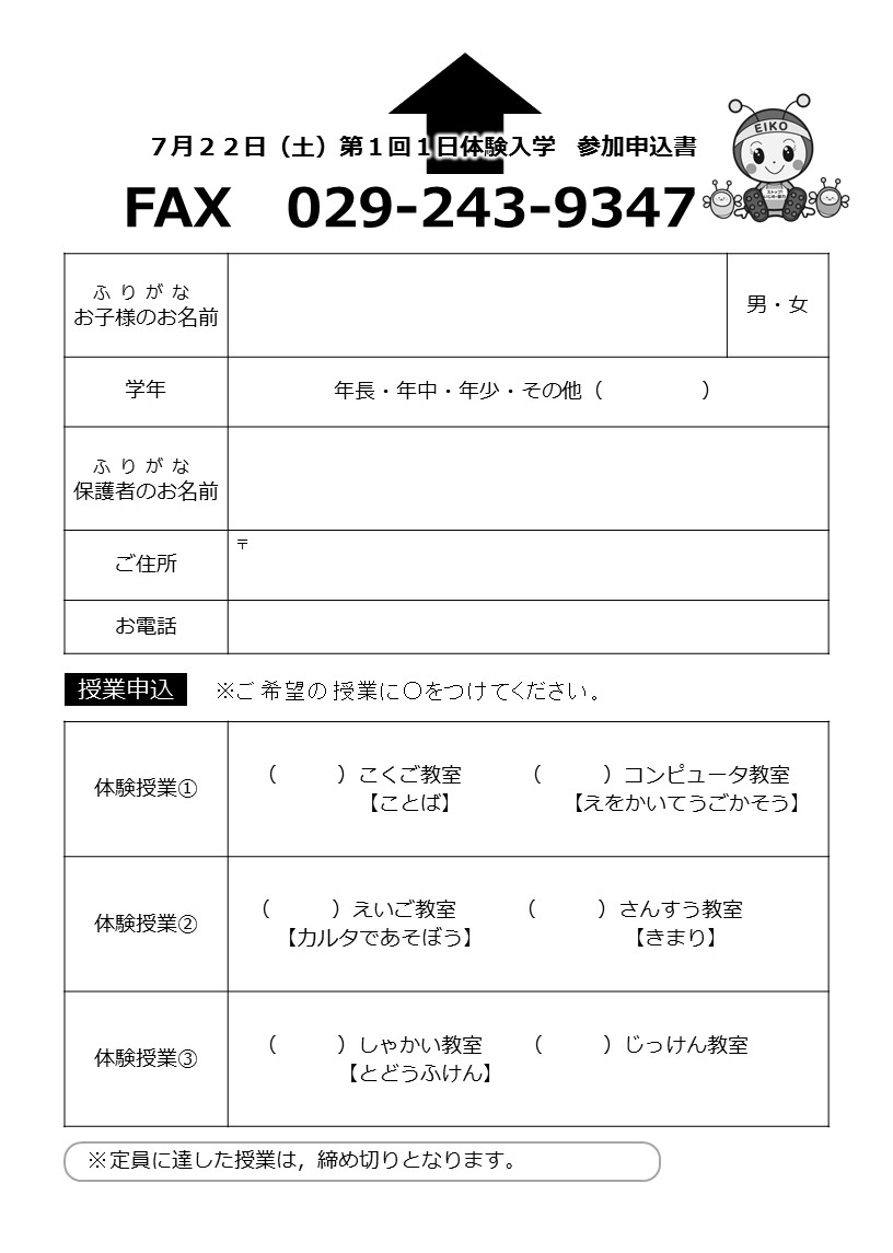 参加ご希望の方は、電話・メール・FAXにてご予約ください。皆様のご来校をお待ちしております。