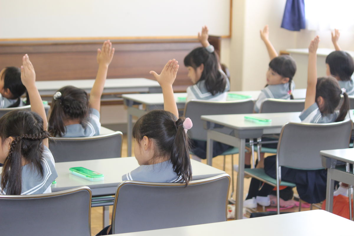 算数の体験授業「おさる」さんは上から何番目かな。上手に説明できました。