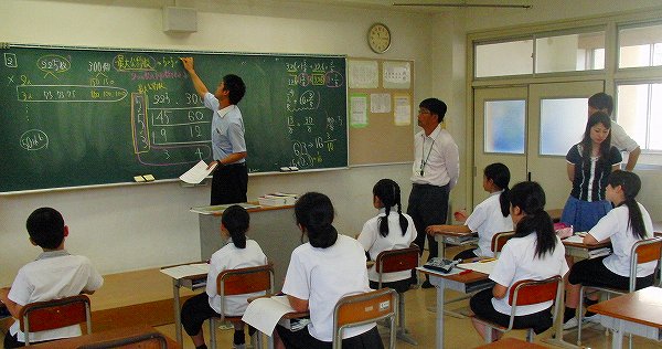 今日から夏休み。英宏中では、この夏休みを利用して、英宏小学校からの内部進学生を対象とした特別学習会を実施いたします。本日は、その第1日目。初めに簡単なガイダンスがあり、「国語」と「算数」のテストが行われました。テストの後は、「算数」のテスト解説授業。