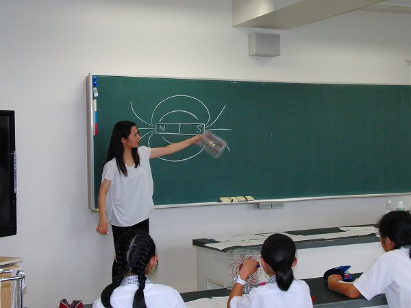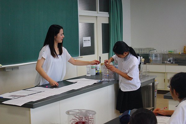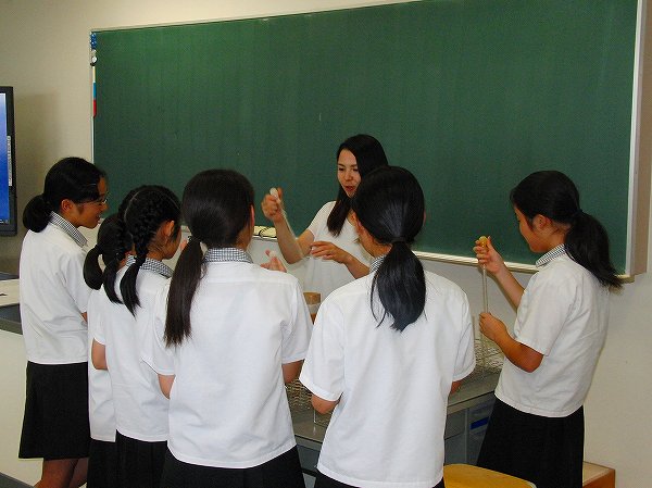 授業の後半は、器具や薬品を用いての実験。テストに出題された内容を目の前で行われる実験を通して確認し、児童一人ひとりが正解を導き出しました。