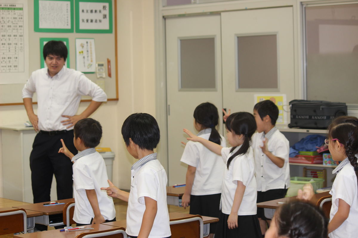サマースクールⅠ期1年生の英語の学習(英語でジャンケン)