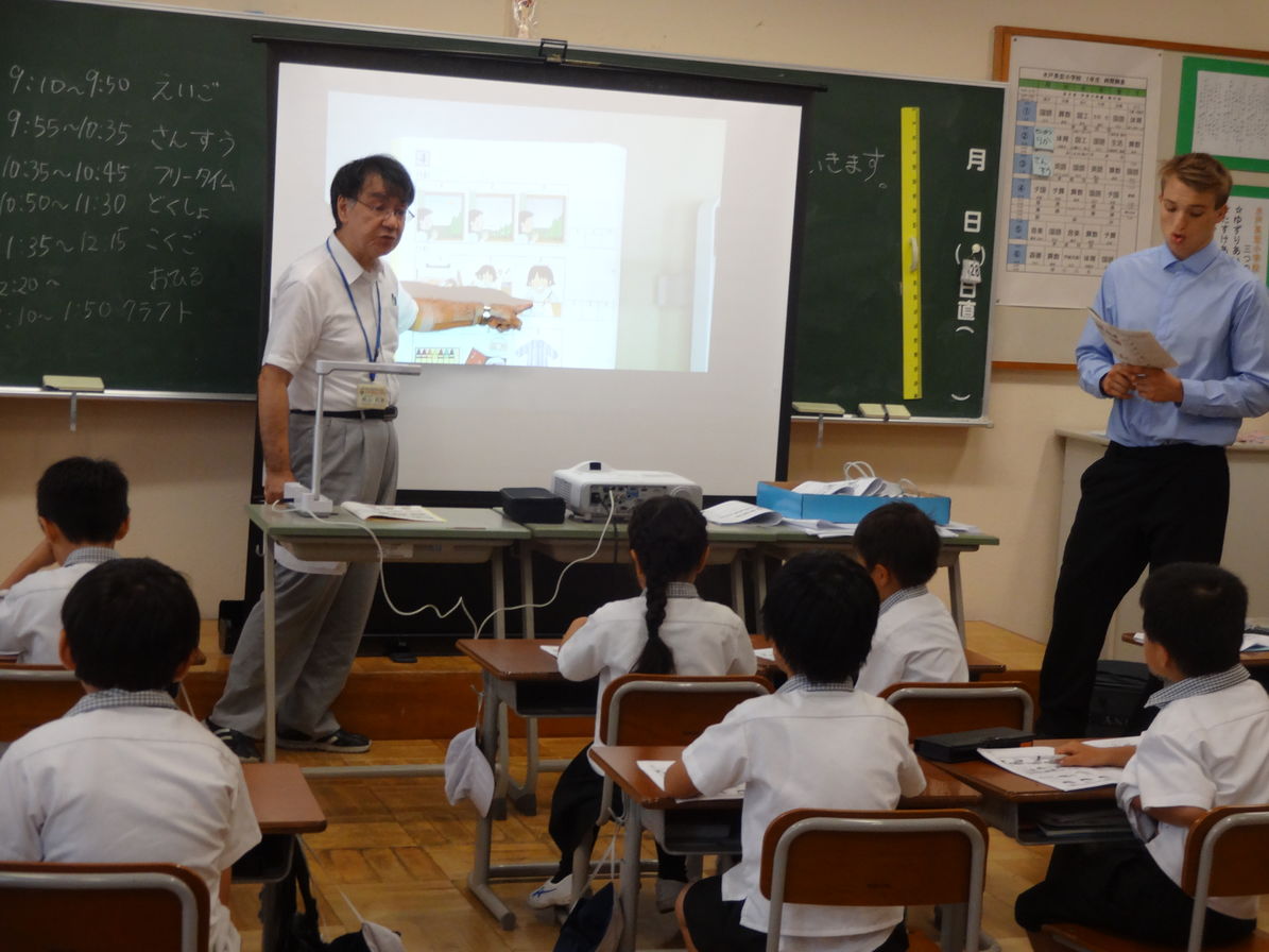 サマースクール Ⅱ期 2日目1年生 英語の授業正しい英語の発音を何回も繰り返し,声に出すことでしっかりと身につけています。