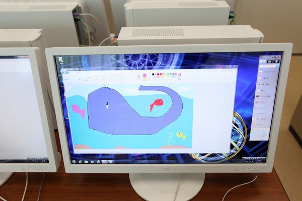 1,2年生は今日もコンピュータを活用しました。今日はペイントでのお絵かきでマウス操作になれること,そして,インターネットで調べ学習を学びました。