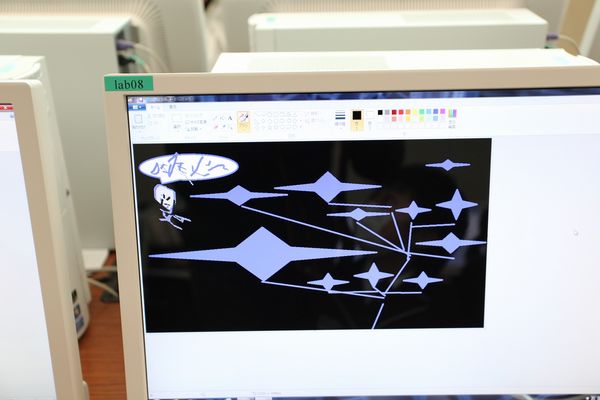 2年生がペイントですばらしい作品を仕上げていました。EIKO CG作品展です。