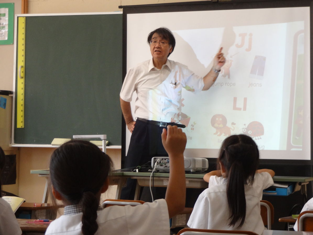1年生映像を見ながら,素晴らしい発音で答えています。