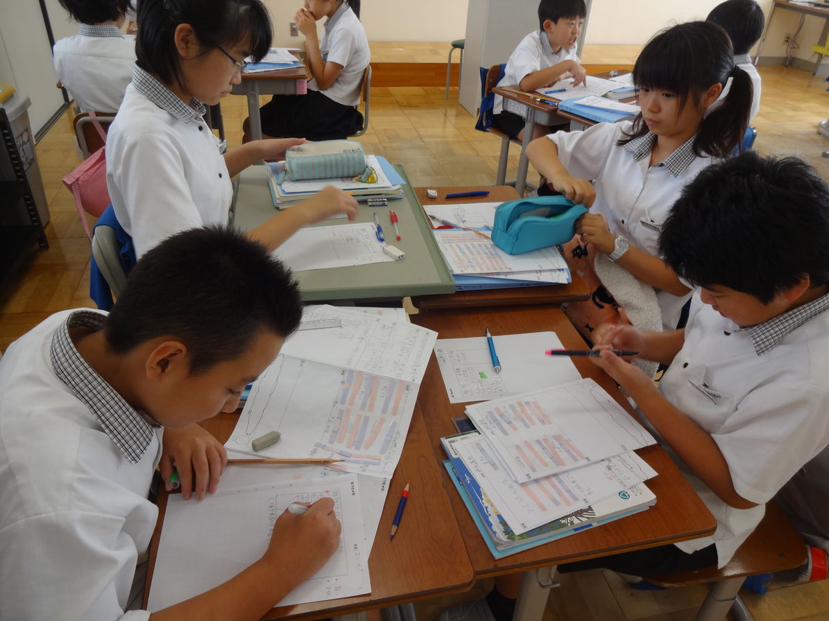 2年生アサガオの葉の葉脈が,どのようになっているか意欲的に学習しています。