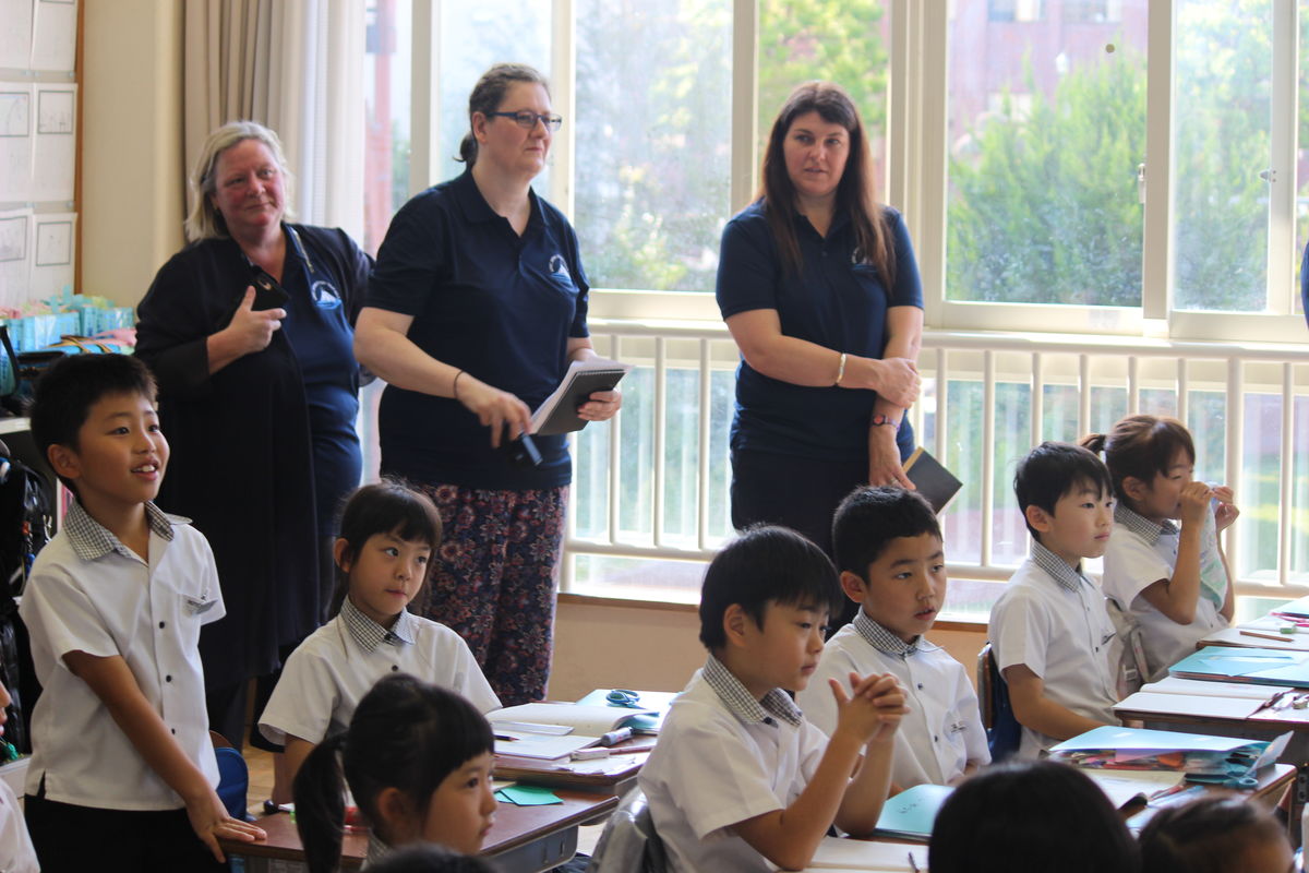 本校と姉妹校協定を結んでいるオーストラリアのUpwey高校、Tecoma小学校、Ferny Creek小学校などの教職員が研修として英宏小学校・中学校に来ました。