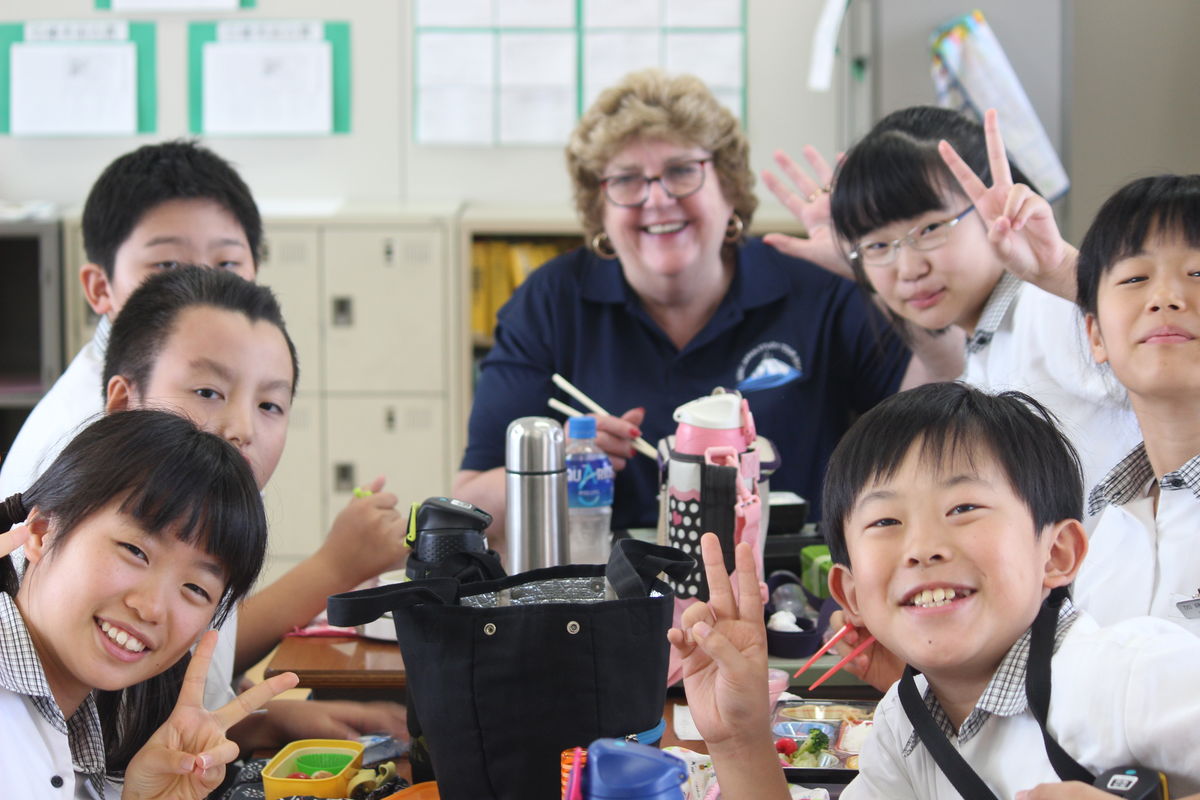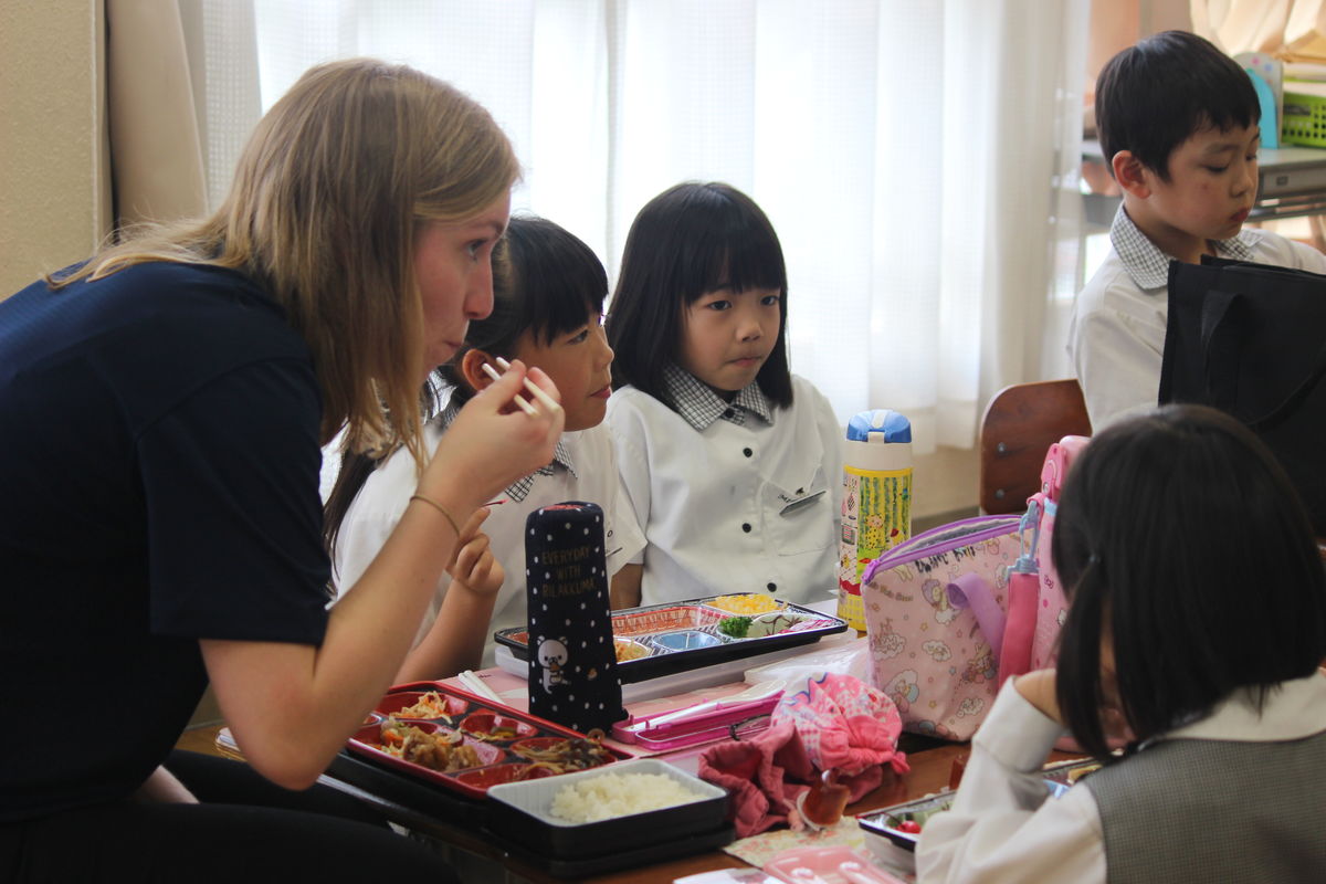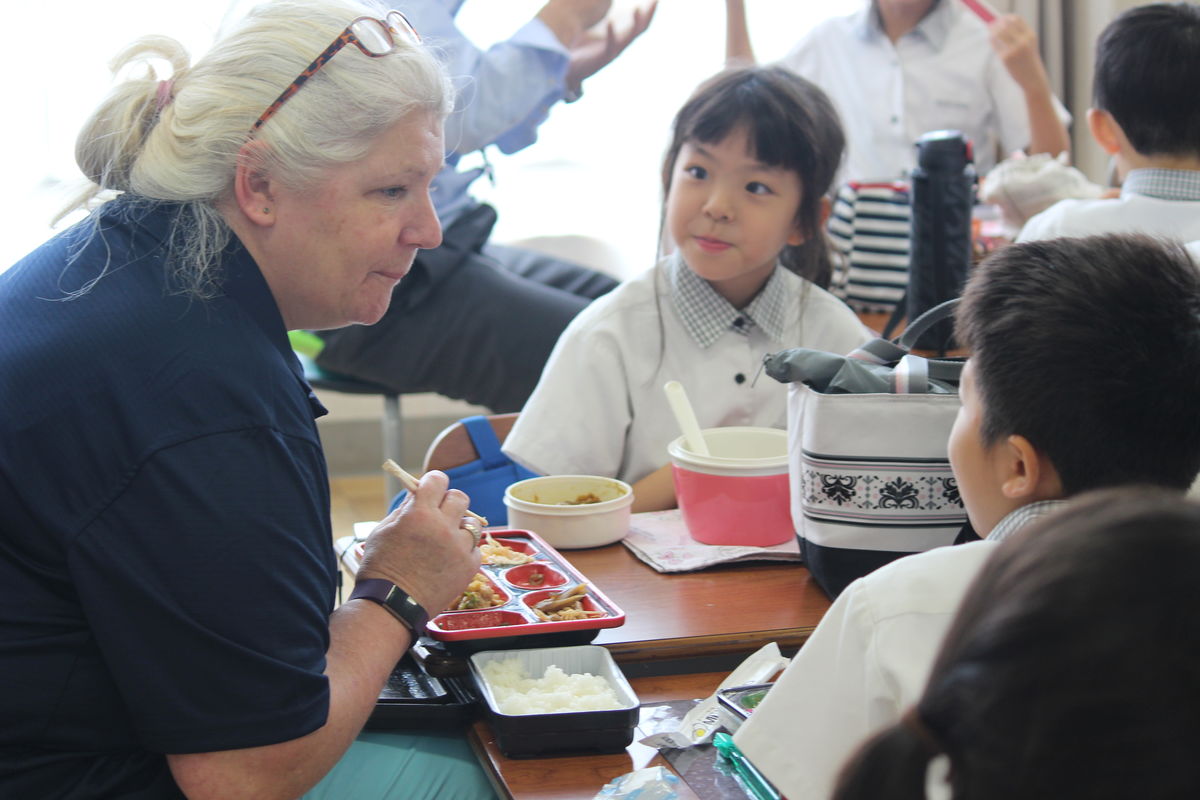 休み時間やお昼は英宏小の児童と一緒に食べました。