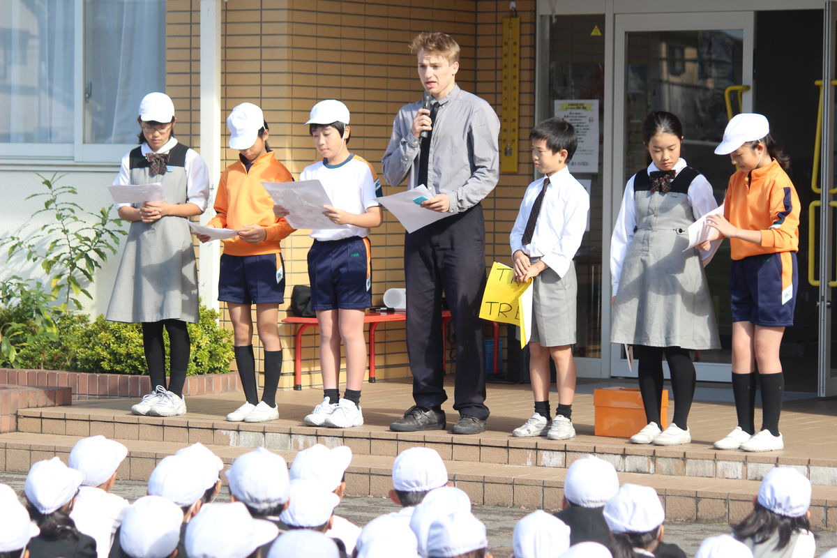 本日のイングリッシュ・ミーティングでは、ジョッシュ先生がオーストラリアのハロウィンについてみんなに教えてくれました。
