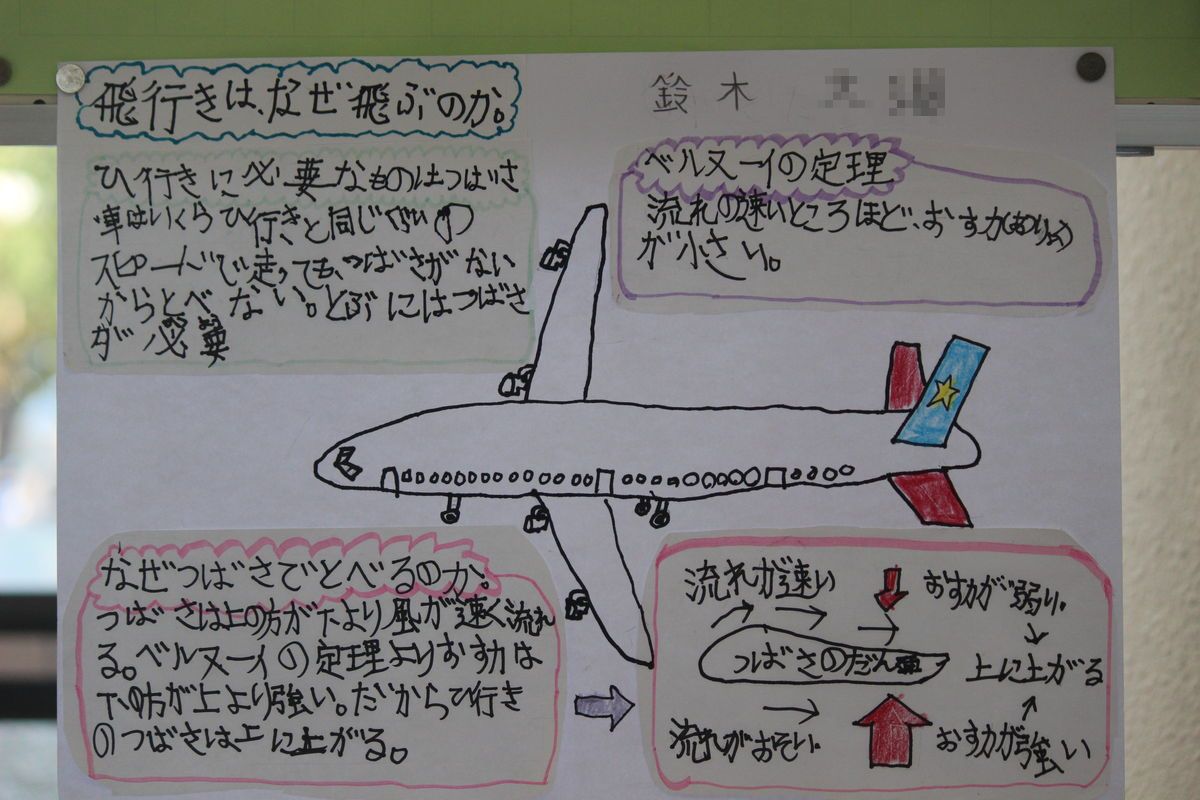 2年鈴木さんの作品です。「飛行きはなぜ飛ぶのか」について調べました。飛行機が飛ぶのを説明するのはとっても難しいんですね。