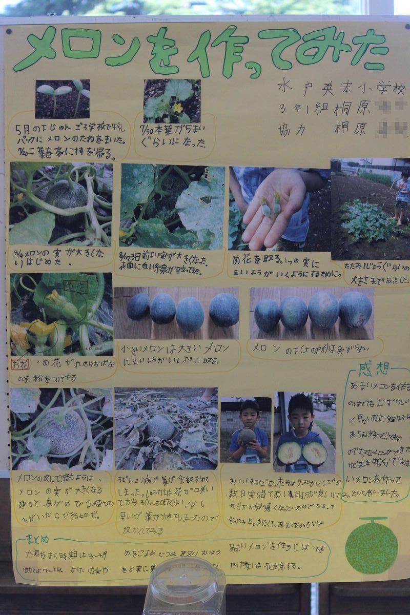 2年桐原さんの作品です。メロンを栽培して観察記録をつけました。メロンはおいしかったかな。
