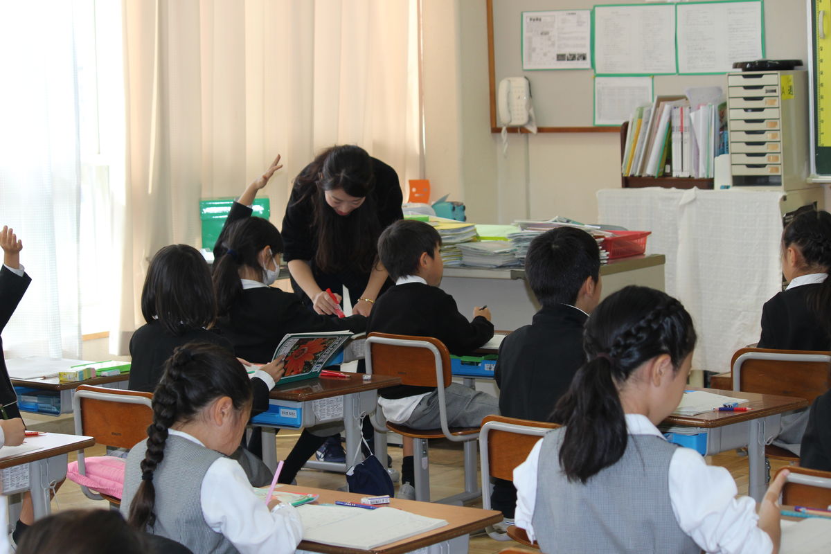 授業風景③ 5年生(図工 木版画のTT授業)