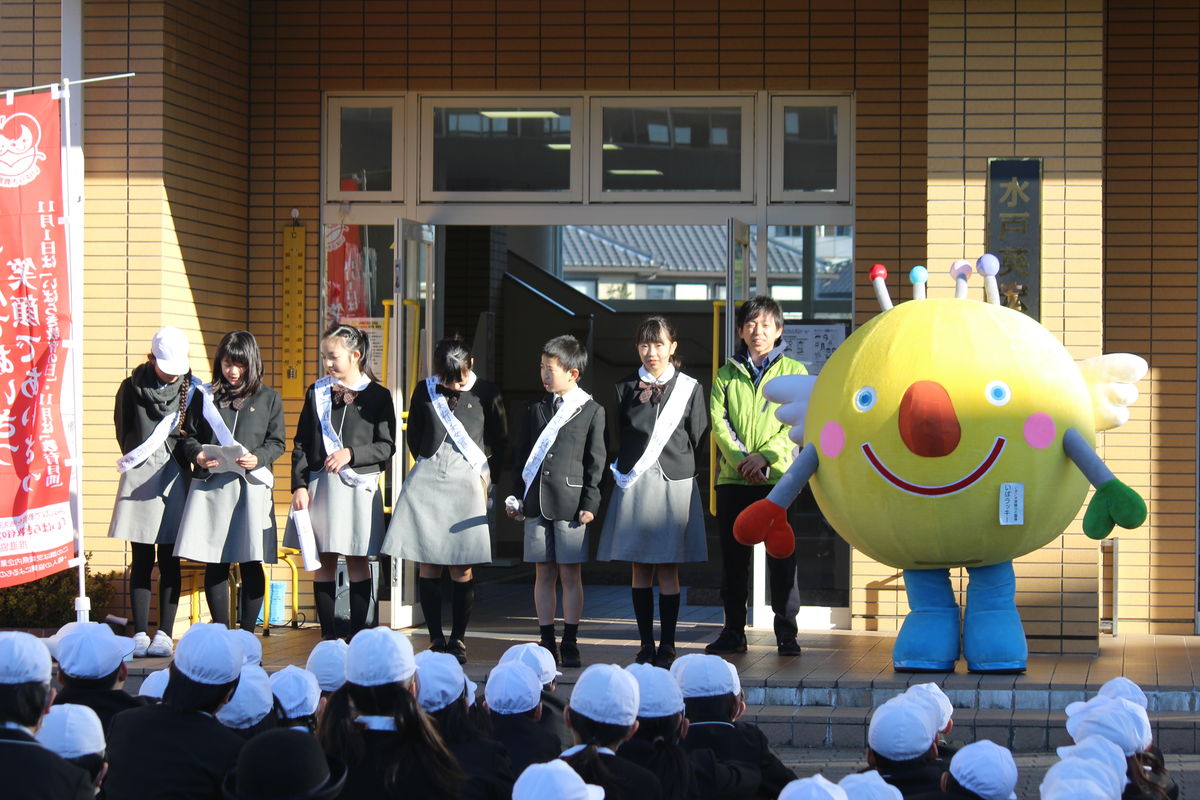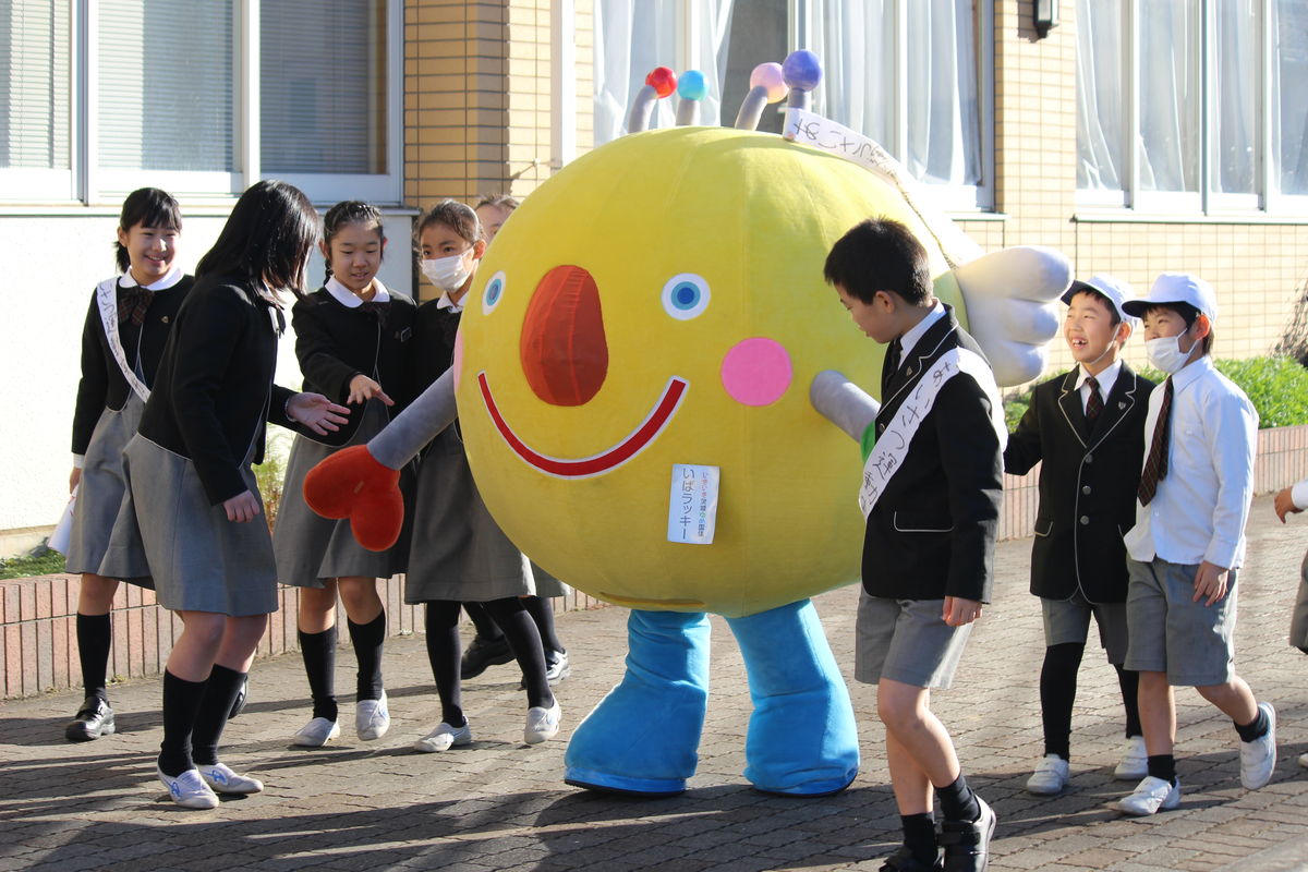今日は,いばラッキーと一緒にあいさつ運動を行いました。元気に挨拶することで,みんなの素敵な笑顔がいっぱいになりました。