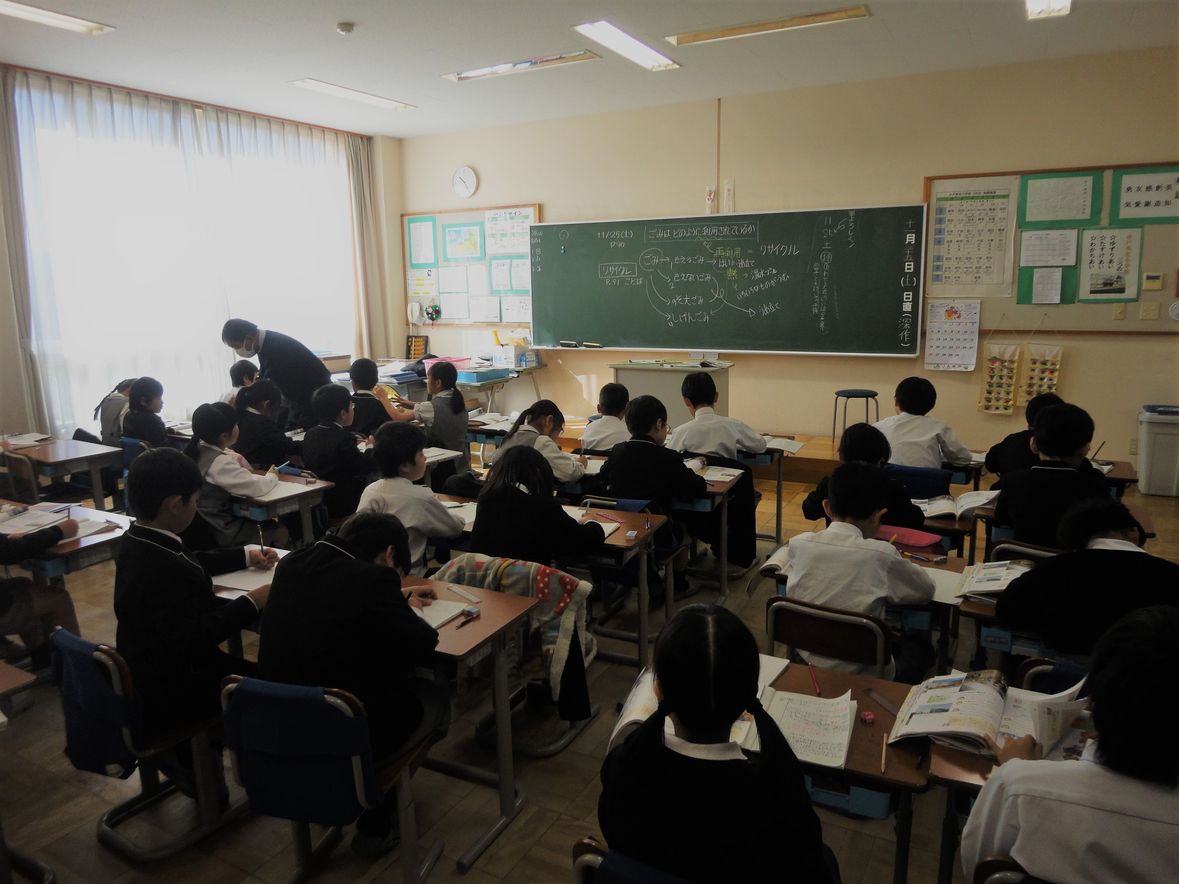 3年生の社会の授業です。ごみの種類やリサイクルについて学びました。