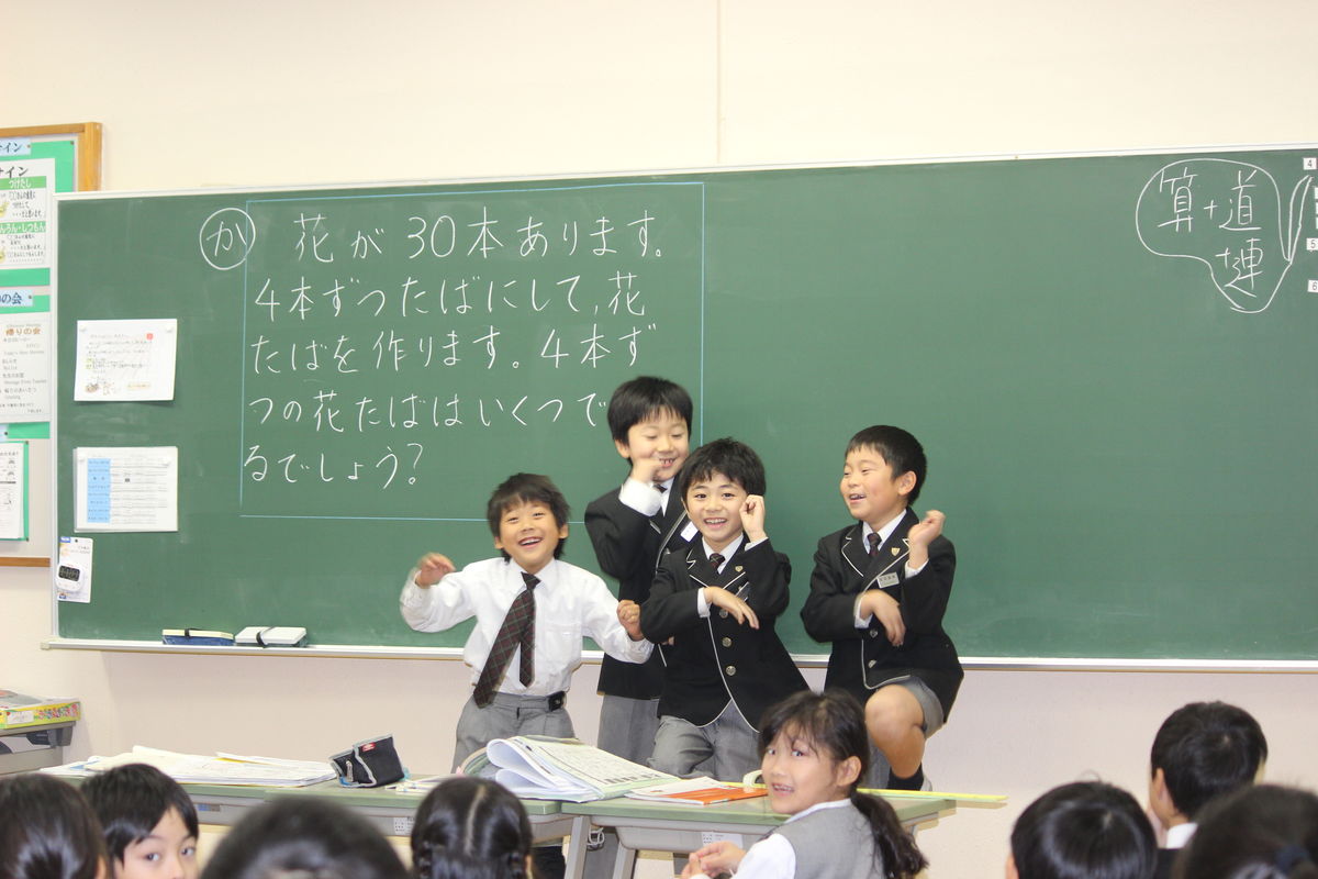 2年生の算数の授業④「疑問を追求する場面」 (4人で?を追求するダンス披露)