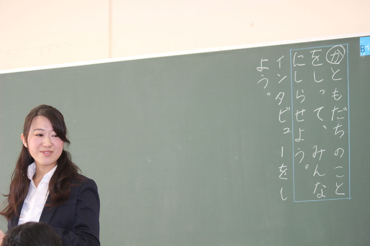 1年生は国語の授業です。友だちにインタビューをして,知ったことをみんなに伝えました。