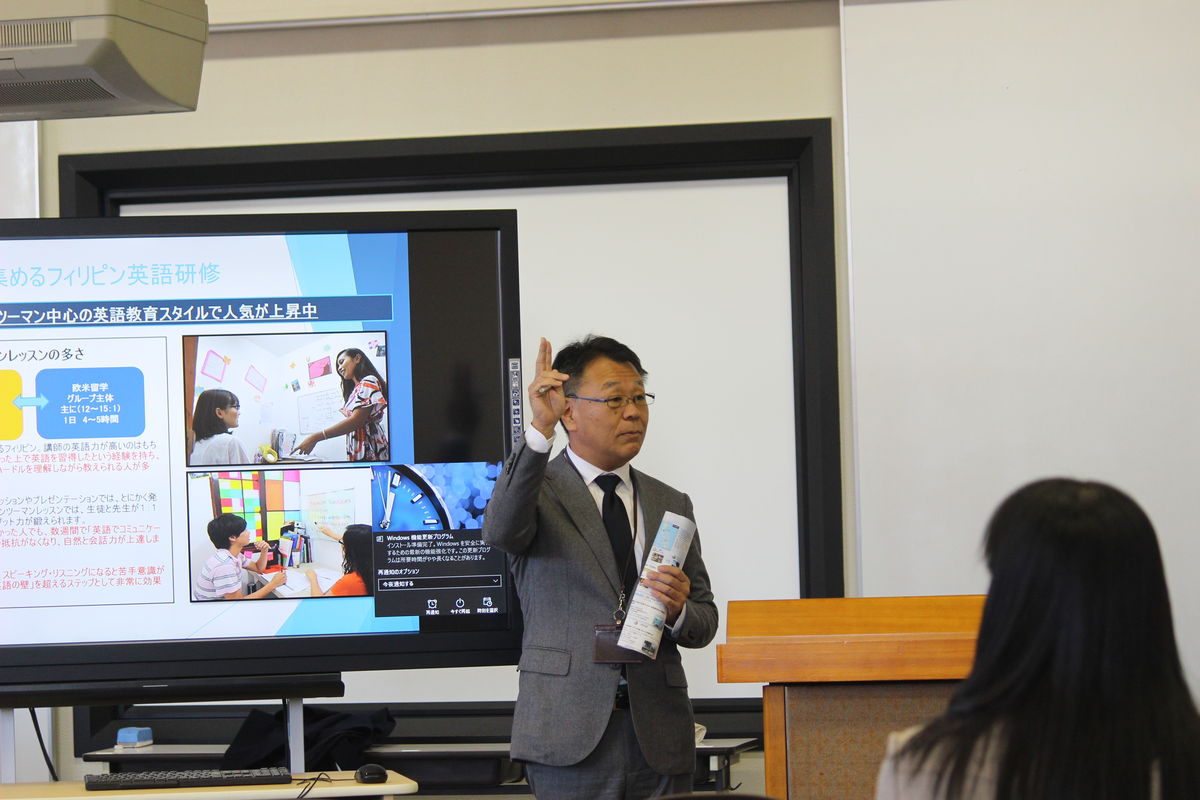 海外語学研修説明会では,セブ島でのマンツーマンレッスンの内容などについて,お話をしました。