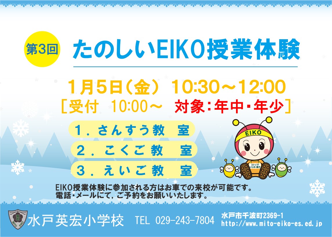 11月24日(月祝) 第2回入試直前 『EIKO授業体験+学校説明会』参加者募集 【児童募集】