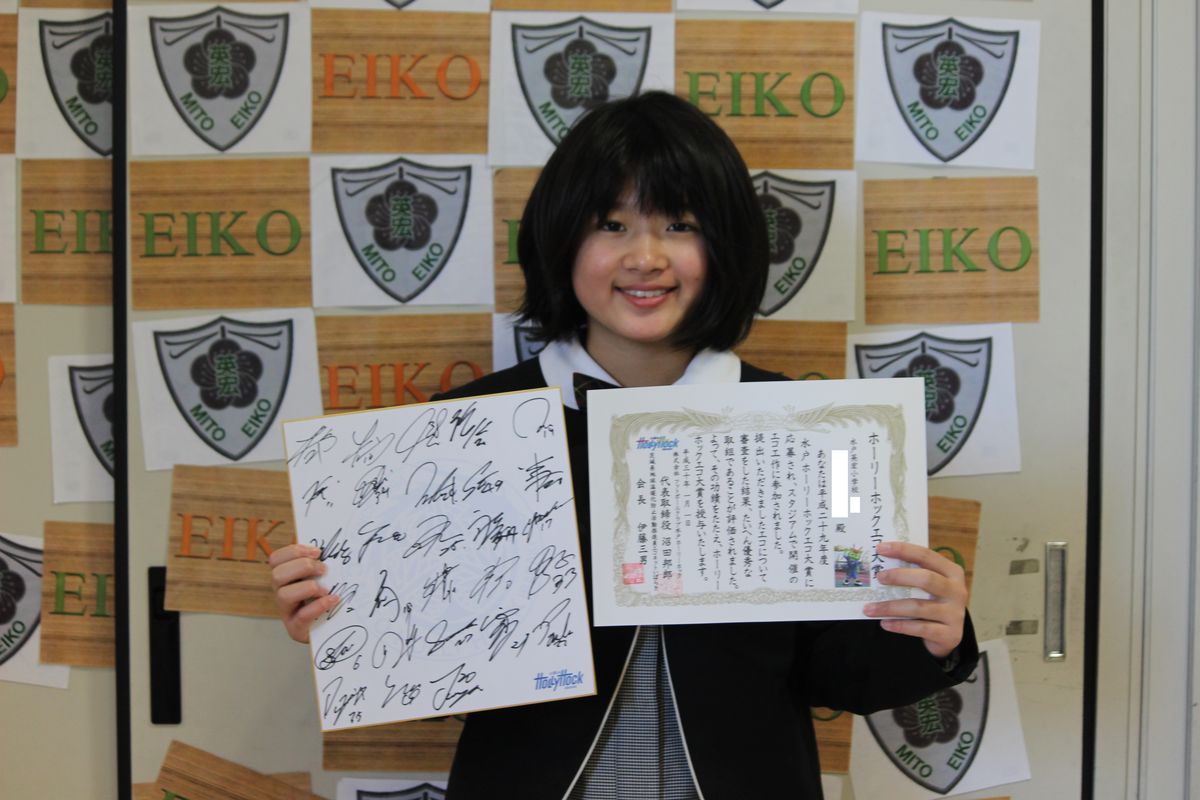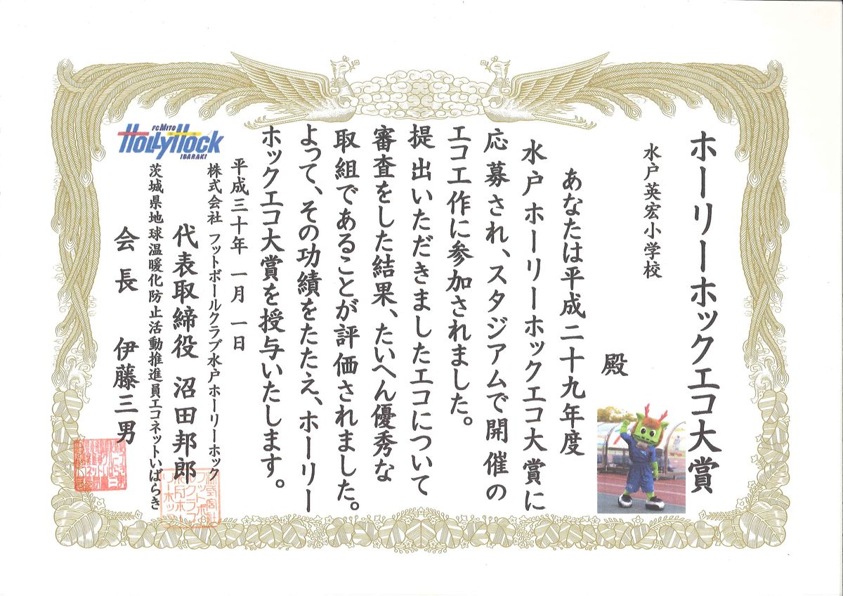 水戸ホーリーホックのスタジアムで開催されたエコ工作で,本校の児童が水戸ホーリーホックエコ大賞を受賞しました。