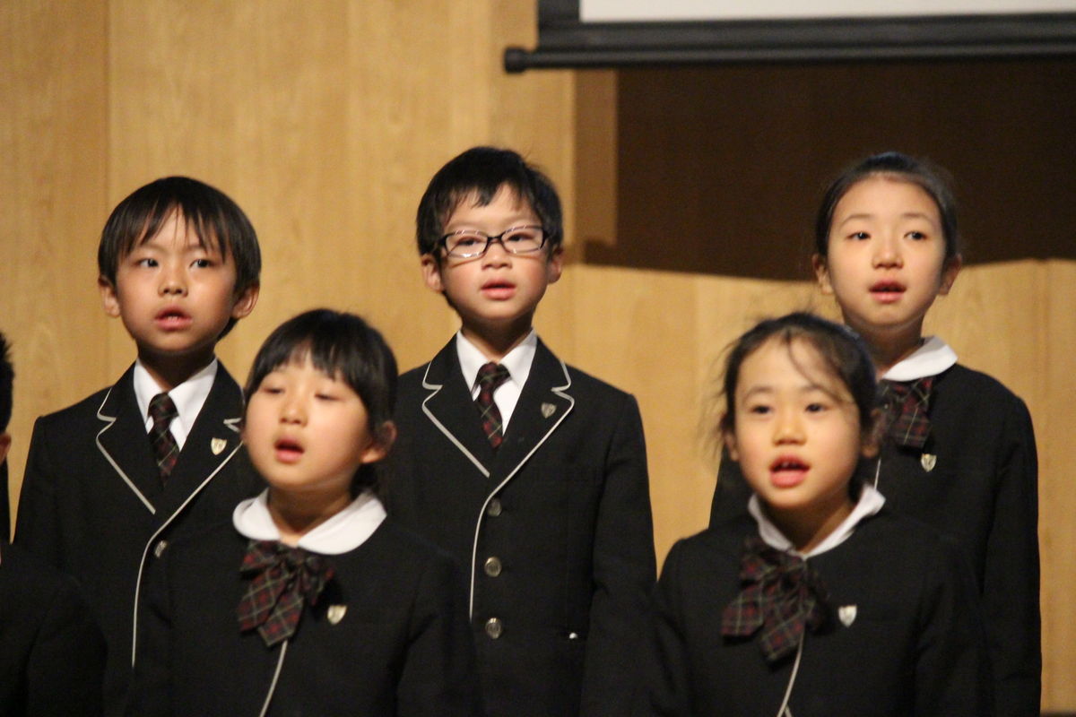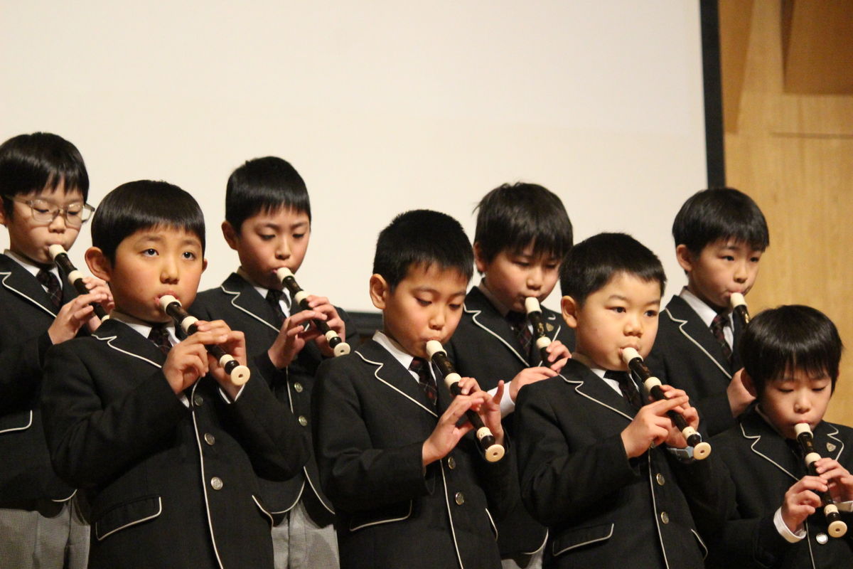 1年生は,合唱「レッツゴーいいことあるさ」,合奏「子犬のマーチ」を演奏しました。