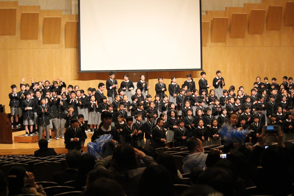 6年生は,学習発表「日本の伝統文化」,合唱「ひろい世界へ」を演奏しました。