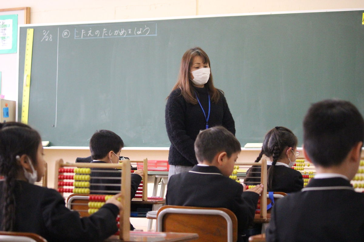 授業風景① 1年生 算数(百玉そろばん)