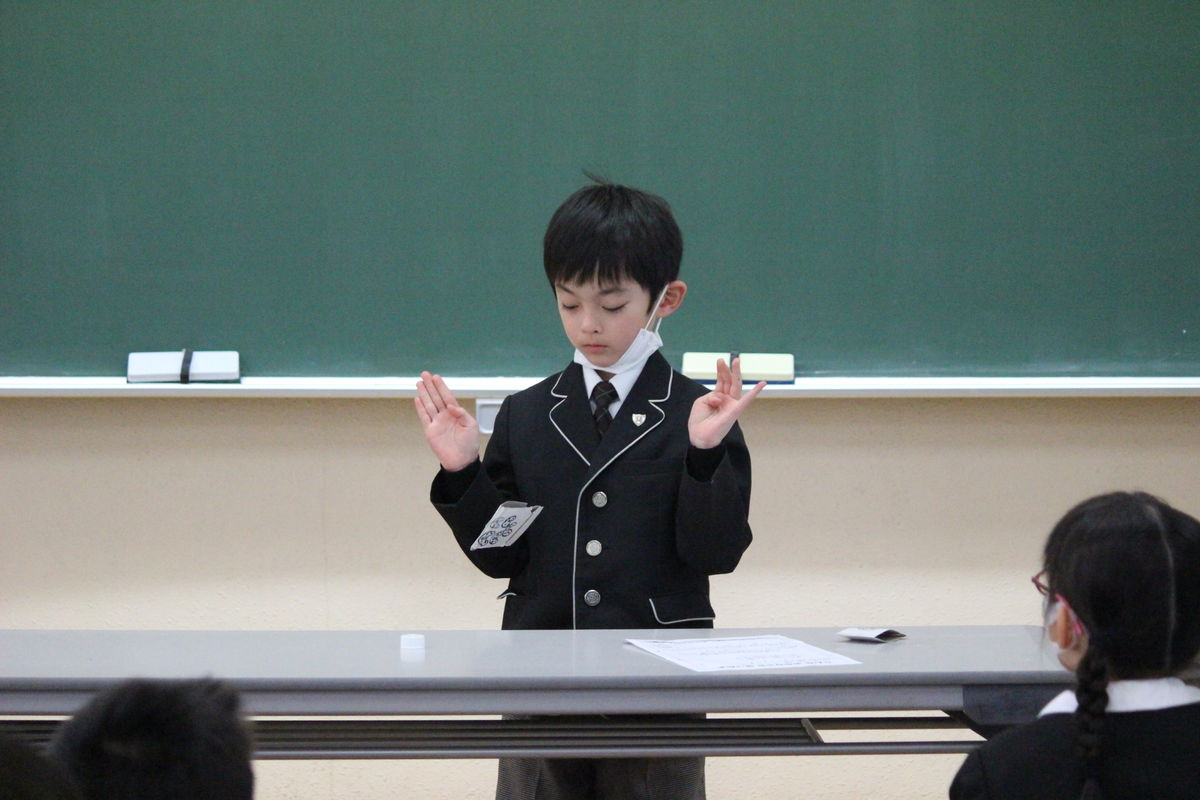 2年生の生活の授業で,実際に作ったおもちゃを見せながら,報告書をもとに発表しました。
