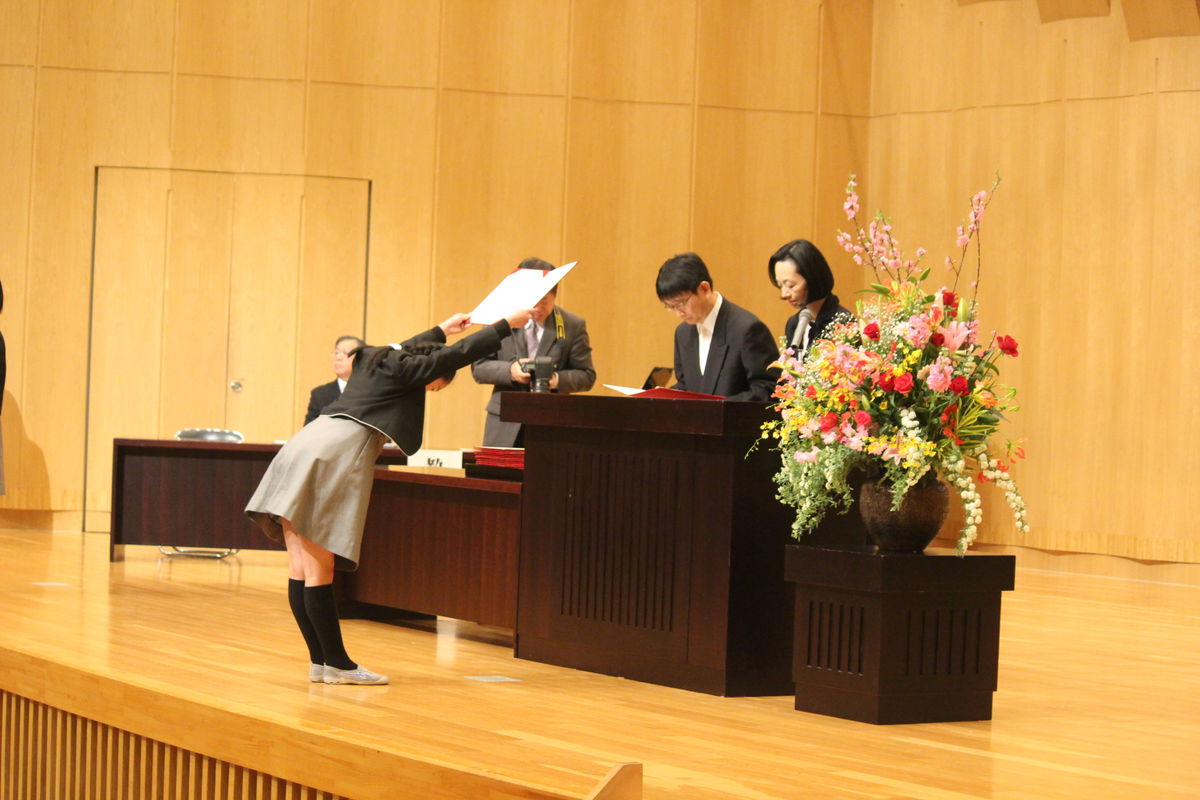 担任の先生から名前を呼ばれると,元気な声で返事をして卒業証書を受け取りました。