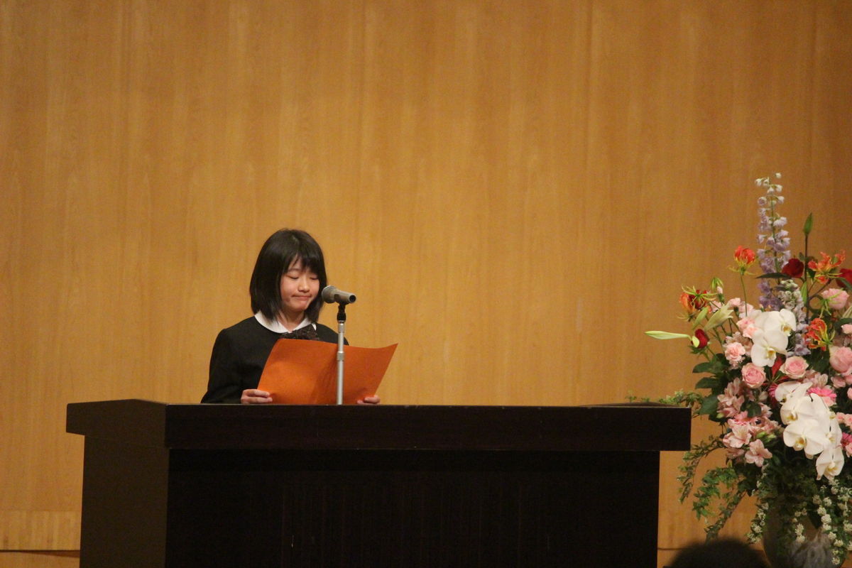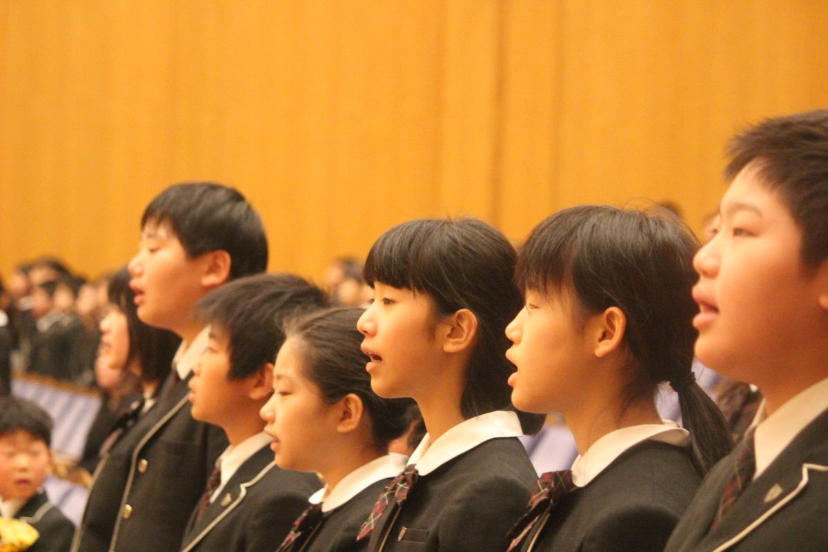 6年生代表の児童が歓迎のことばを述べ、全校生で校歌を披露しました。