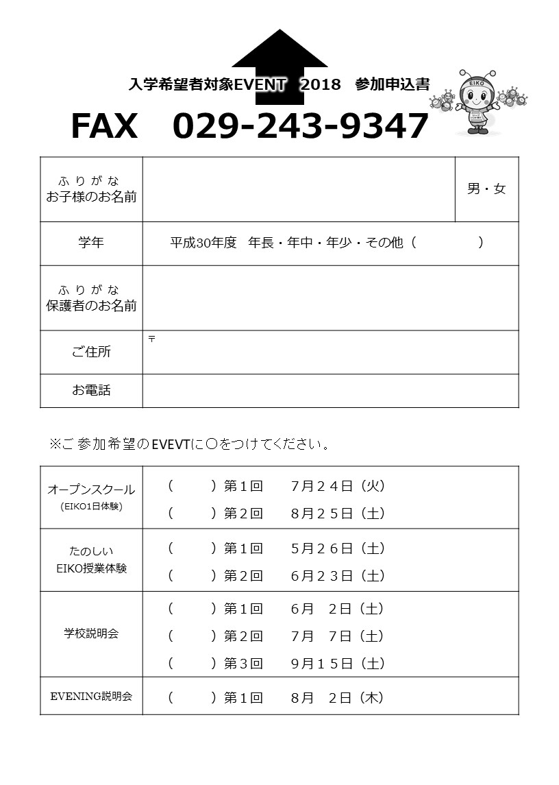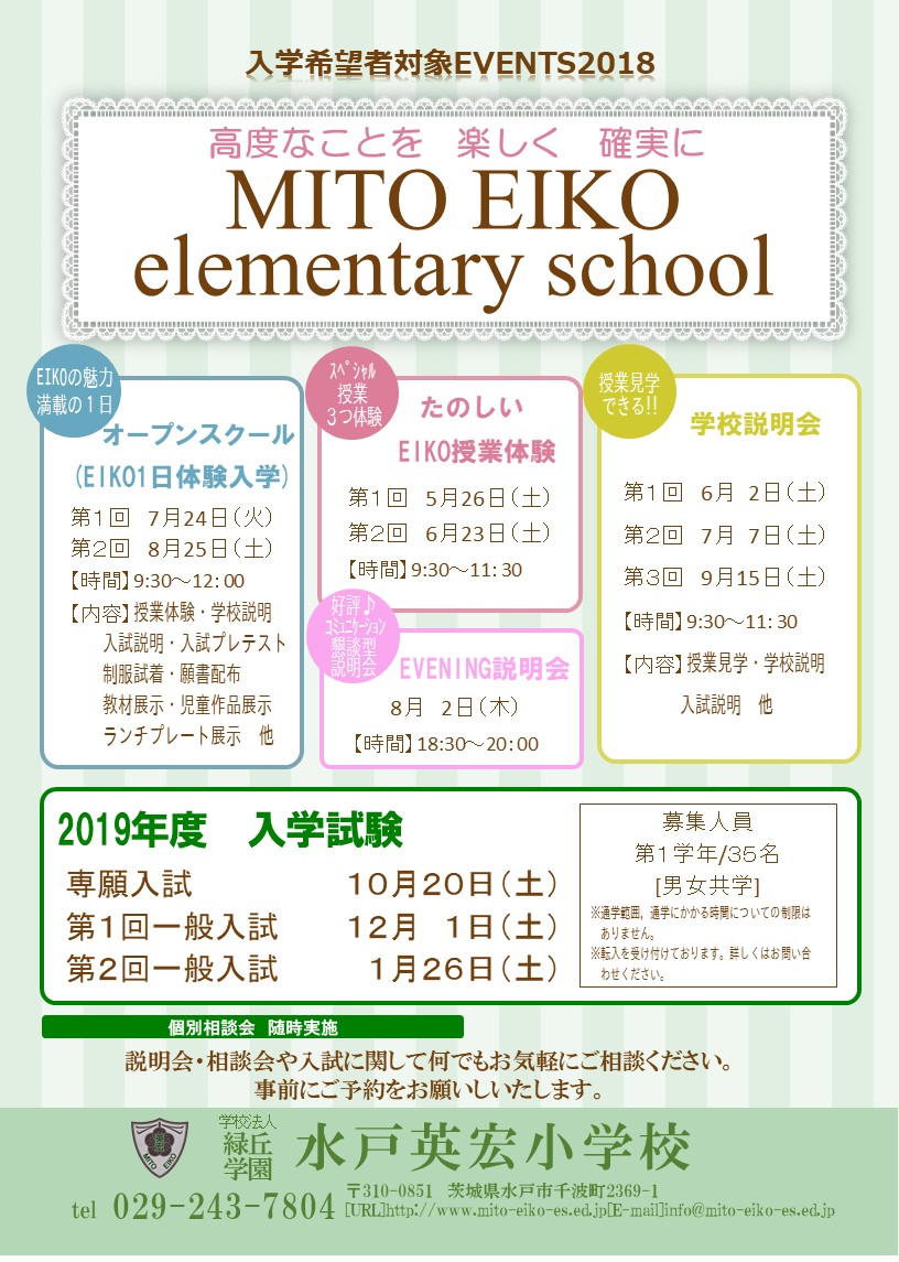 2018年度の本校の児童募集関連イベントをお知らせします。