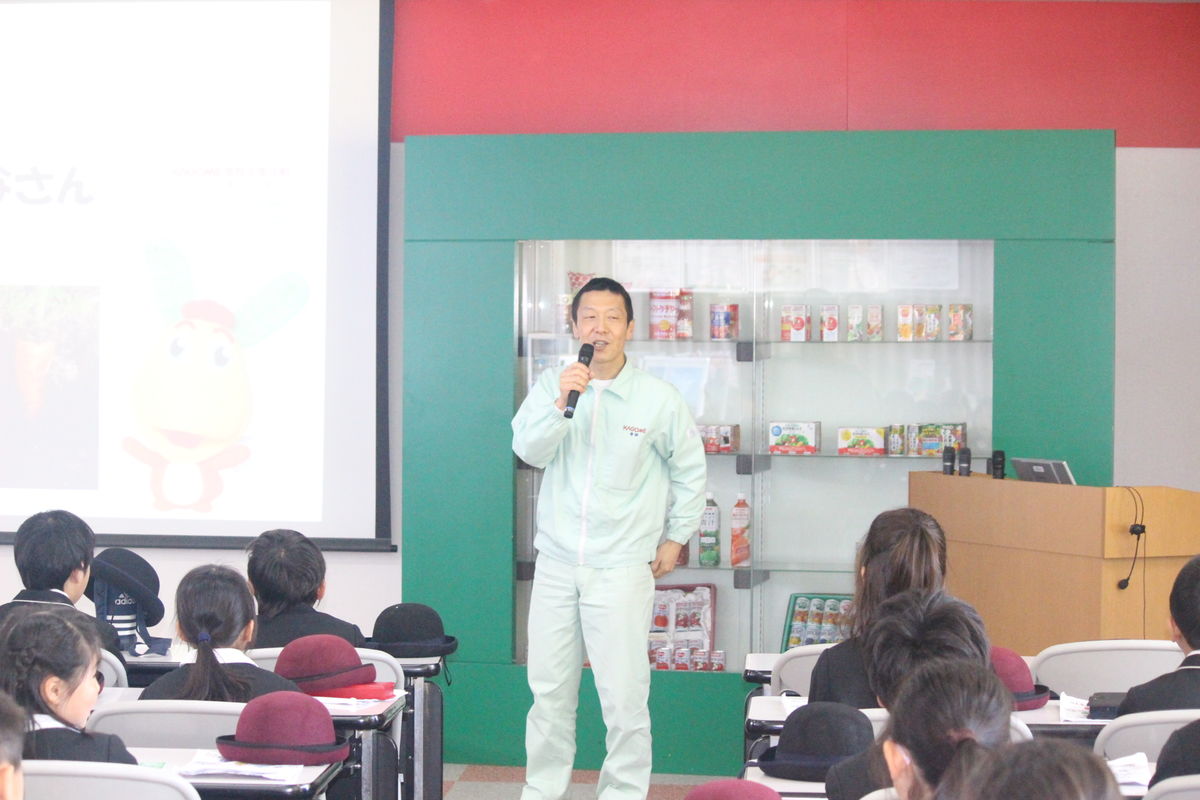 那須工場では、看板商品の「カゴメトマトジュース」などの生産が行われています。原料となる野菜の処理を行い、缶やペットボトル、紙パック飲料の製造工程を見学することができました。