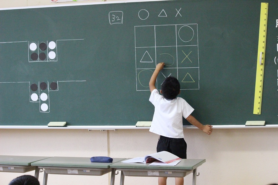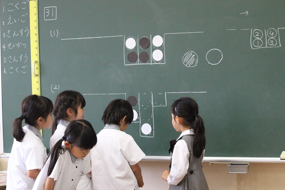 算数では教科書の内容の他に考える力を育てる学習を行っています。