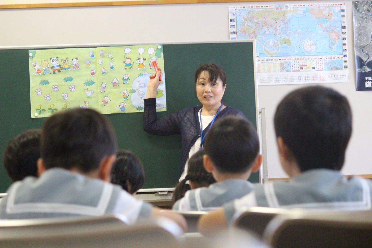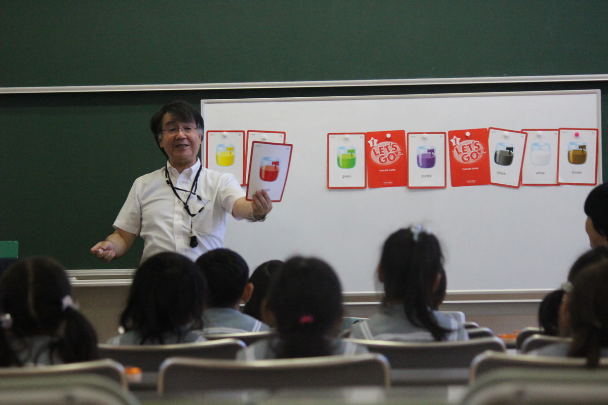本日、水戸英宏愛宕幼稚園・水戸英宏平須幼稚園の年長さんが本校に来校しました。今回は、英語と算数の授業を体験しました。英宏小学校と両幼稚園は年間を通して幼少連携を推進しています。英語の体験授業では、色と形そして、楽しい歌を歌いました。