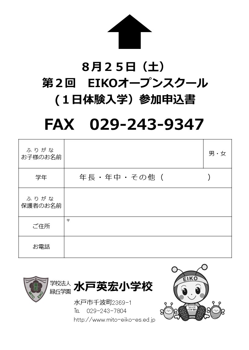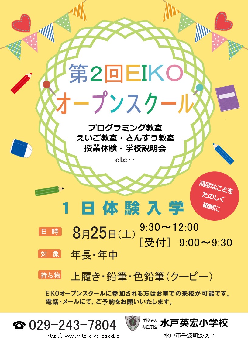 「第2回オープンスクール(EIKO1日体験入学)」を8月25日(土)に開催いたします。