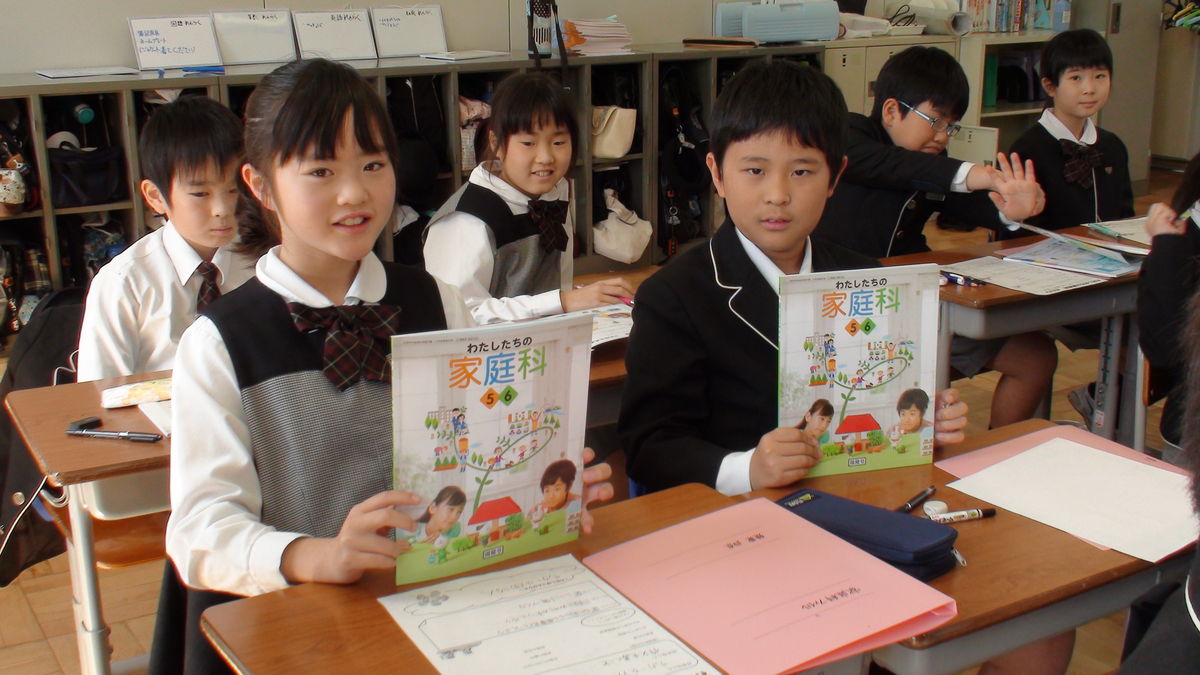 5年生は,家庭科の授業がはじまりました。新しい教科書を手に,どのような学びをするのか子どもたちの笑顔があふれていました。
