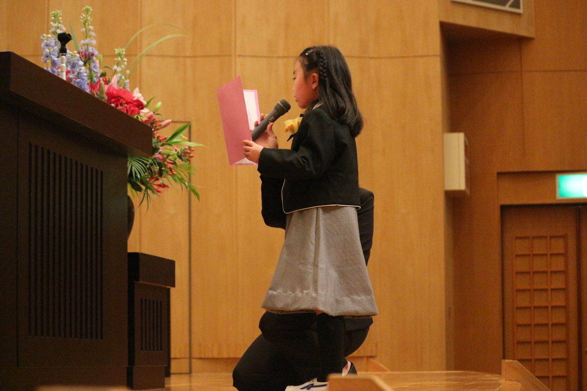 1年生の入学を楽しみにしていた在校生代表からは,英語と日本語によるスピーチで,安心して学校生活がおくれるようなあたたかな言葉かけがありました。
