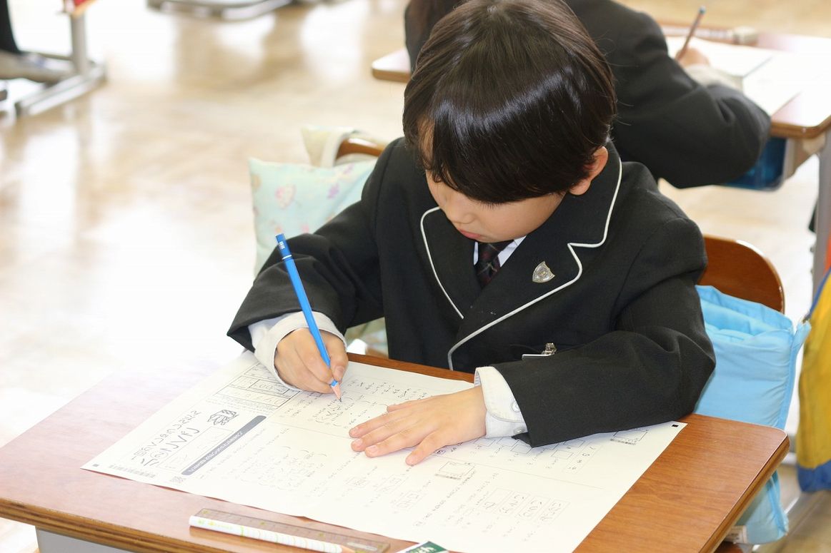 今日は,2年生から6年生まで,第1回私学テストに挑戦しました。