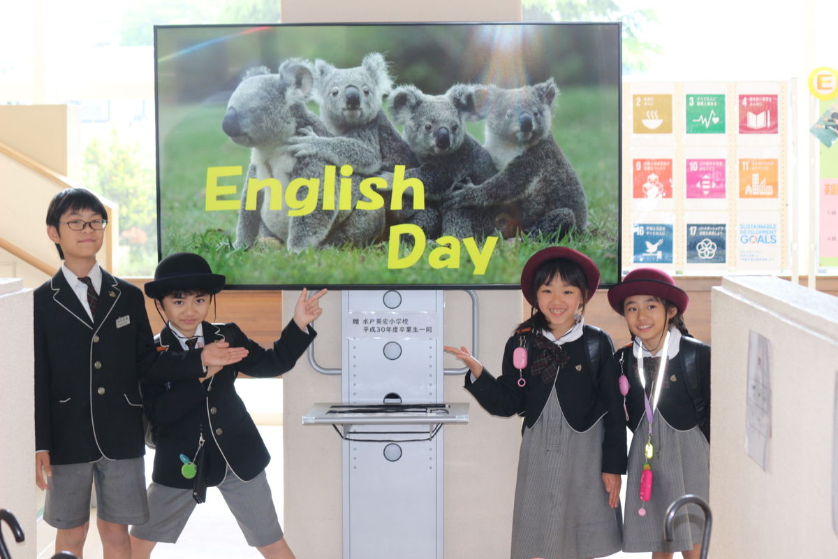 英語力を高めるため,水曜日は英語のシャワーの英宏小学校です。