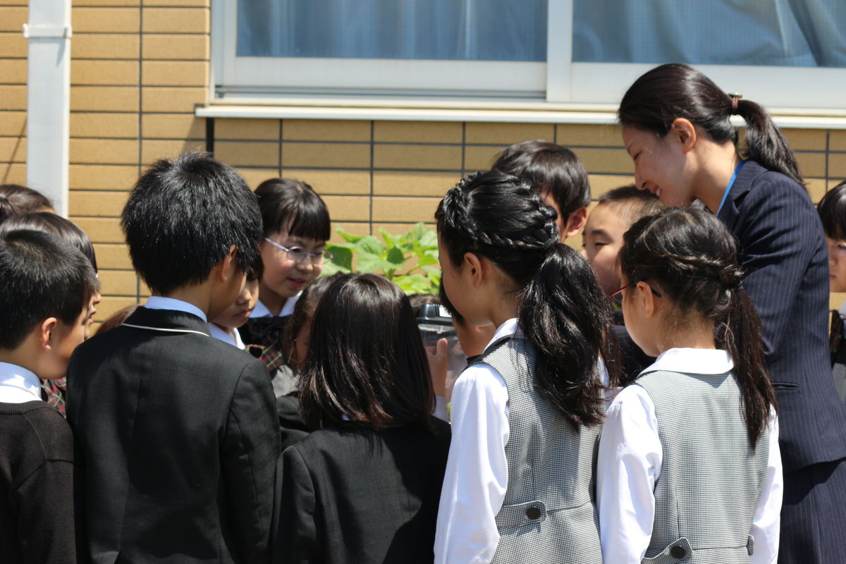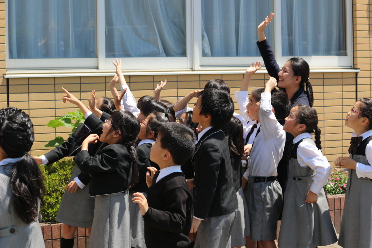 3年生が理科の授業のために育てていたモンシロチョウが,ついに成虫になりました。自然に帰すため今日はモンシロチョウとお別れをしました。