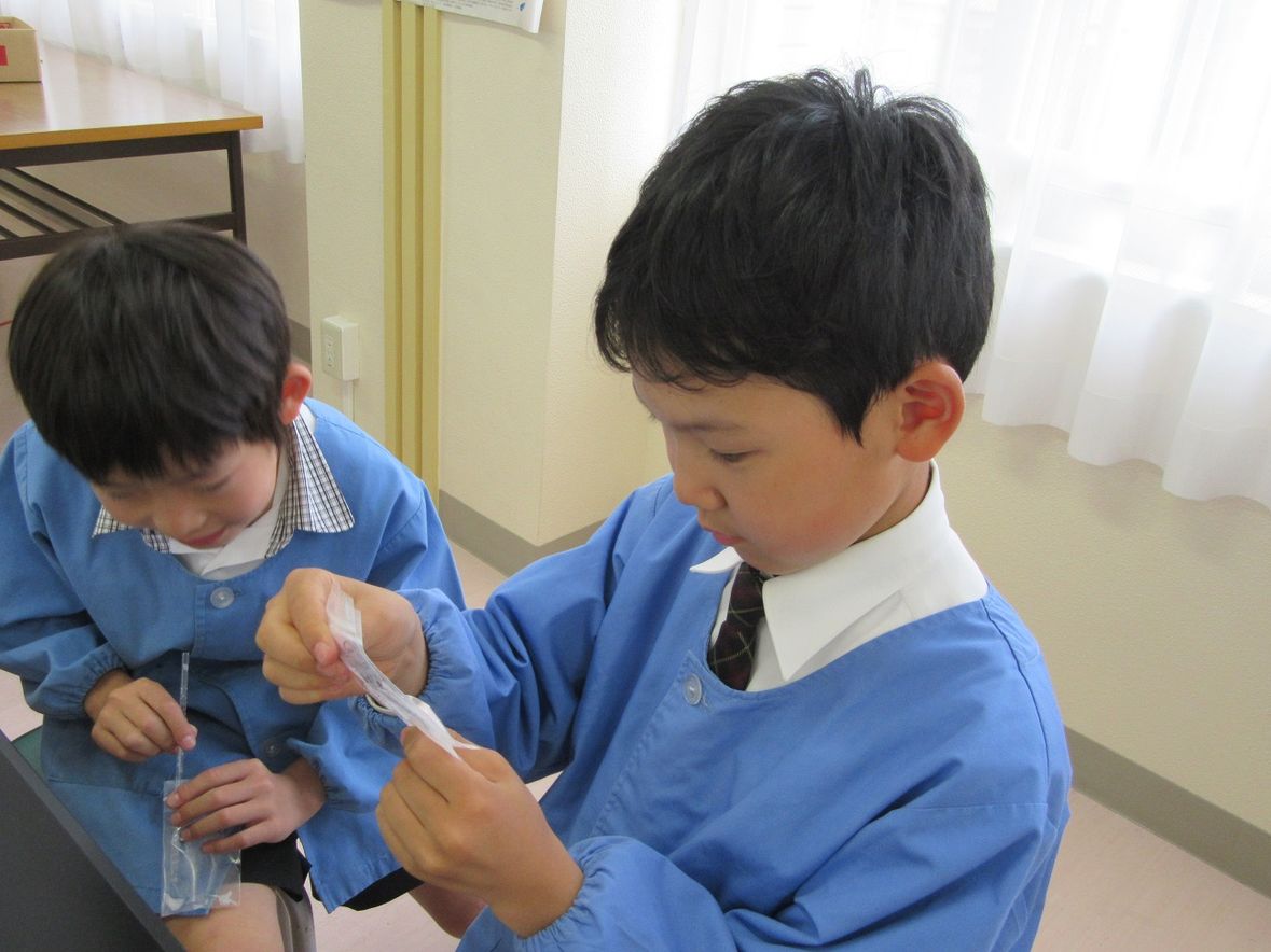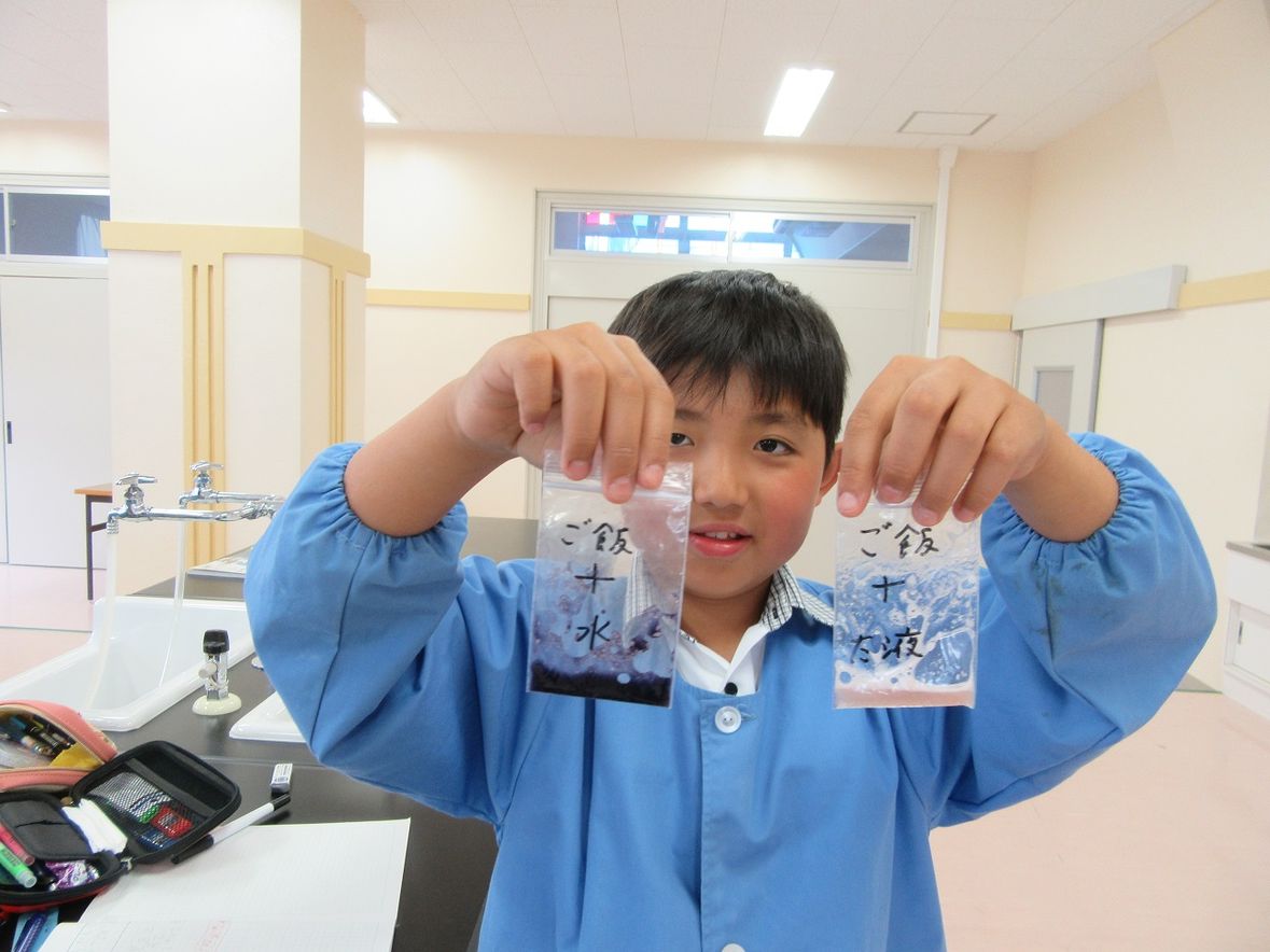 そんな会話から,昨日はだ液のはたらきについて調べるために,実験を行いました。