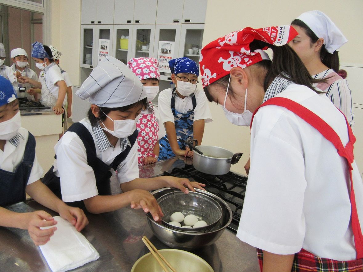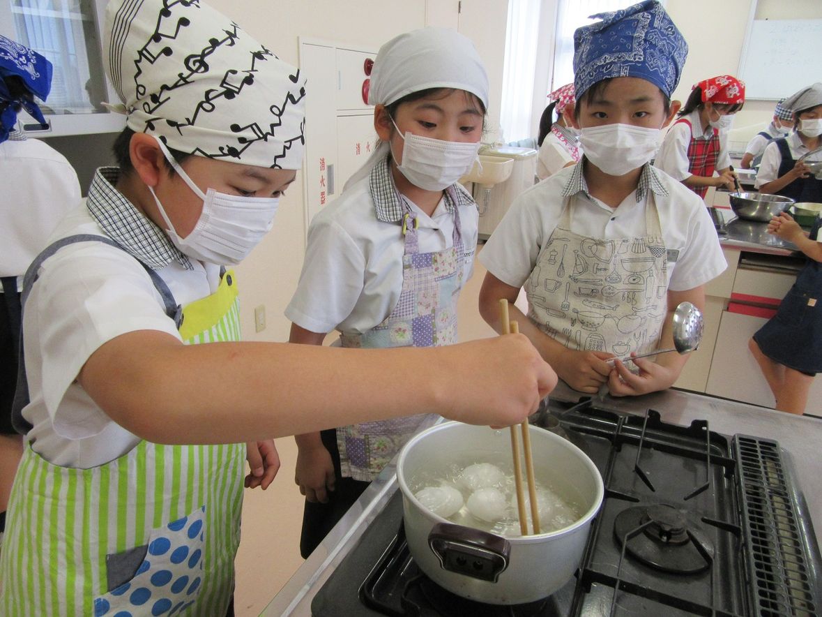 5年生の家庭科の授業では,初めての調理実習を行いました。